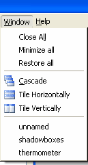 You can switch between the buffers that are currently loaded using the Window menu. The name of the current buffer is displayed just after the menu separator (in The Window Menu with Multiple Buffers, it is unnamed), followed by the names of the other opened buffers.