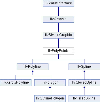 IlvPolyPoints is an abstract class from which is derived every class having shapes composed of several point coordinates. This class lets you derive your own graphic objects that are defined by a series of pairs of coordinates.