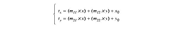 This constructor sets the values of the object so that the represented transformation will be applied by transforming the coordinates of a point p at (x, y) to a transformed point tp at (tx, ty) according to the following formula: