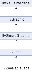An IlvZoomableLabel object acts just like a regular IlvLabel object, but any transformation can be applied to it; in particular, it can be zoomed.