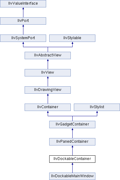 The IlvDockableContainer class is a subclass of IlvPanedContainer for managing docking panes. A docking pane is a pane that can be moved to any dockable area in an interactive way.