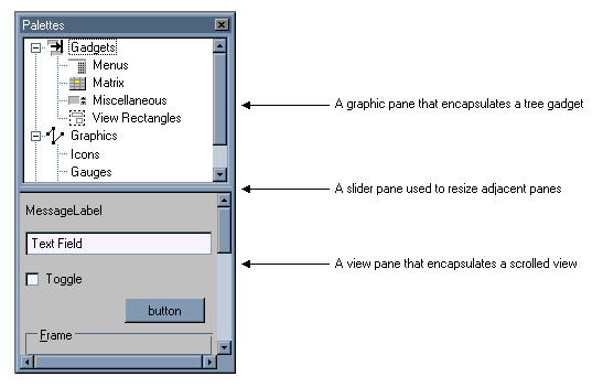 Since an IlvPane object encapsulates a view (by means of the IlvViewPane class), you can build complex structures composed of nested paned containers.