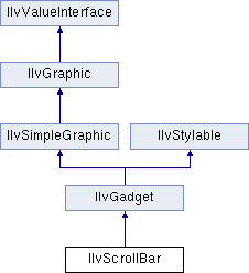 The IlvScrollBar class displays a rectangular area that contains two direction arrows, one at each end, and a slider that refers to a range. It is mainly used to scroll parts of windows.